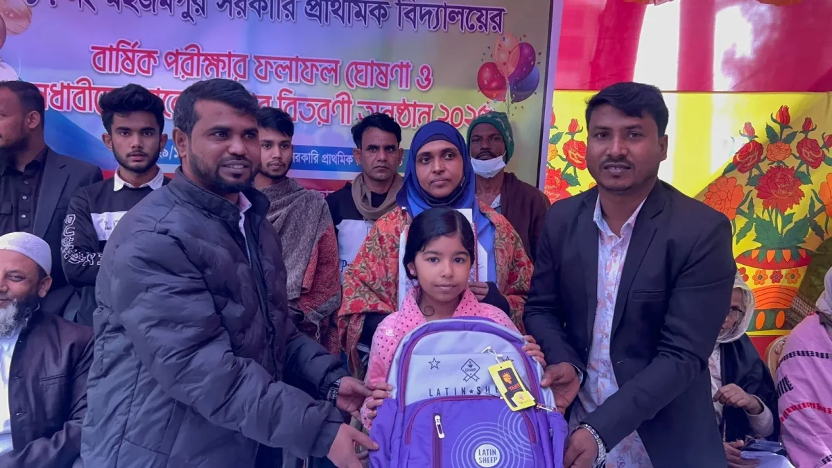 সোনারগাঁ উপজেলার ১৭নং মজহমপুর সরকারি প্রাথমিক বিদ্যালয়ে বার্ষিক পরীক্ষার ফলাফল ঘোষণা ও পুরস্কার বিতরণ অনুষ্ঠান অনুষ্ঠিত হয়েছে। সোমবার (২৯ ডিসেম্বর) বিদ্যালয় প্রাঙ্গণে আয়োজিত এই অনুষ্ঠানে শিক্ষার্থী, অভিভাবক ও অতিথিদের উপস্থিতিতে এক আনন্দঘন পরিবেশের সৃষ্টি হয়। অনুষ্ঠানে প্রধান অতিথি হিসেবে উপস্থিত... বিস্তারিত
