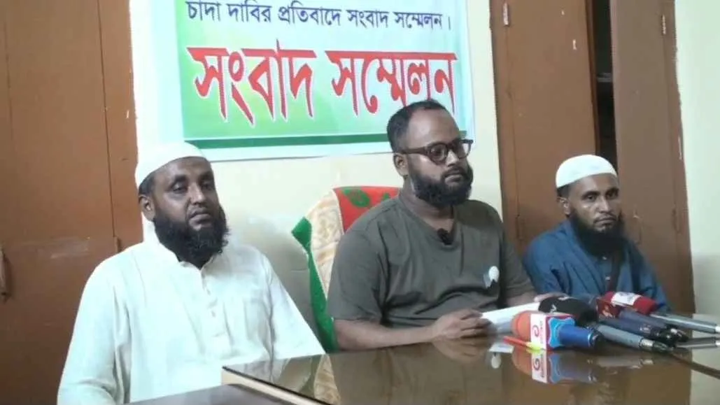 চাঁদাবাজির অভিযোগে এনে ব্যবসায়ীর সংবাদ সম্মেলন