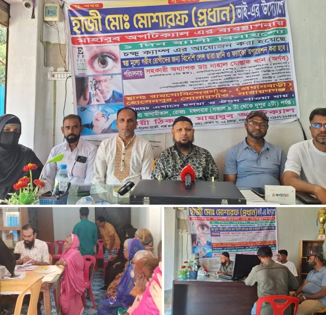 সোনারগাঁয়ে মেম্বার পদপ্রার্থী মোশারফ প্রধানের উদ্যোগে একদিন ব্যাপি বিনামূল্যে চক্ষু চিকিৎসা।