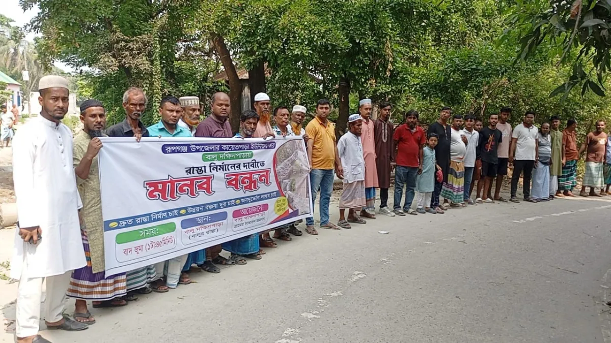 রূপগঞ্জে সড়ক নির্মাণের দাবিতে গ্রামবাসীর মানববন্ধন